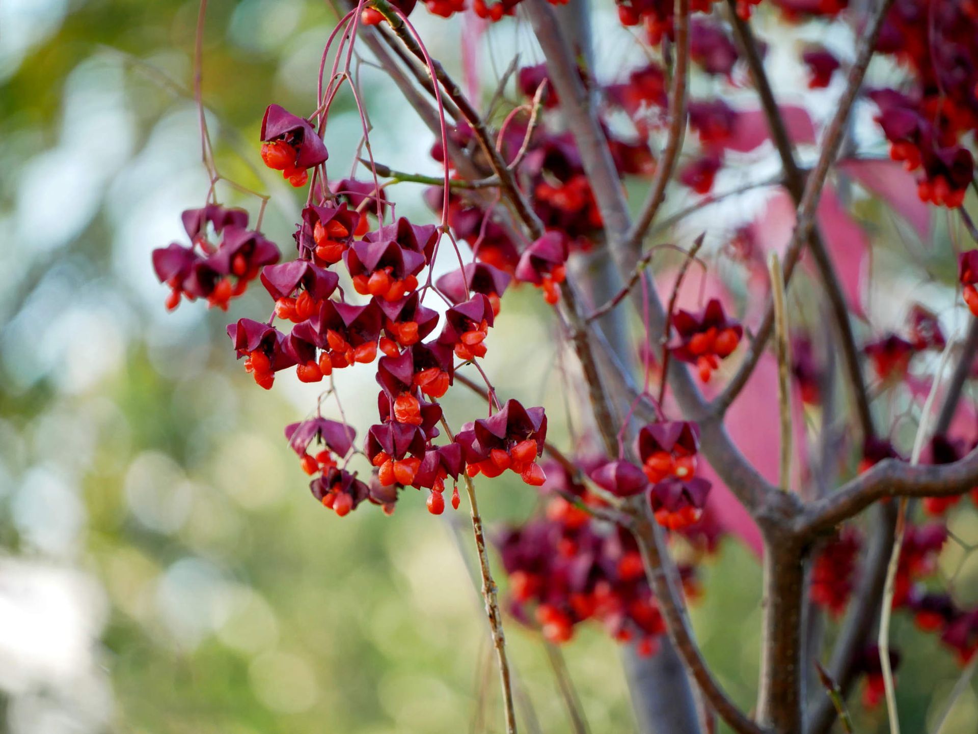 Den största tillgången är alltså buskarnas enastående och lysande höstfärger. Bladen bryter stiligt av mot de egendomligt formade frukterna som ser ut som små kinesiska lyktor.