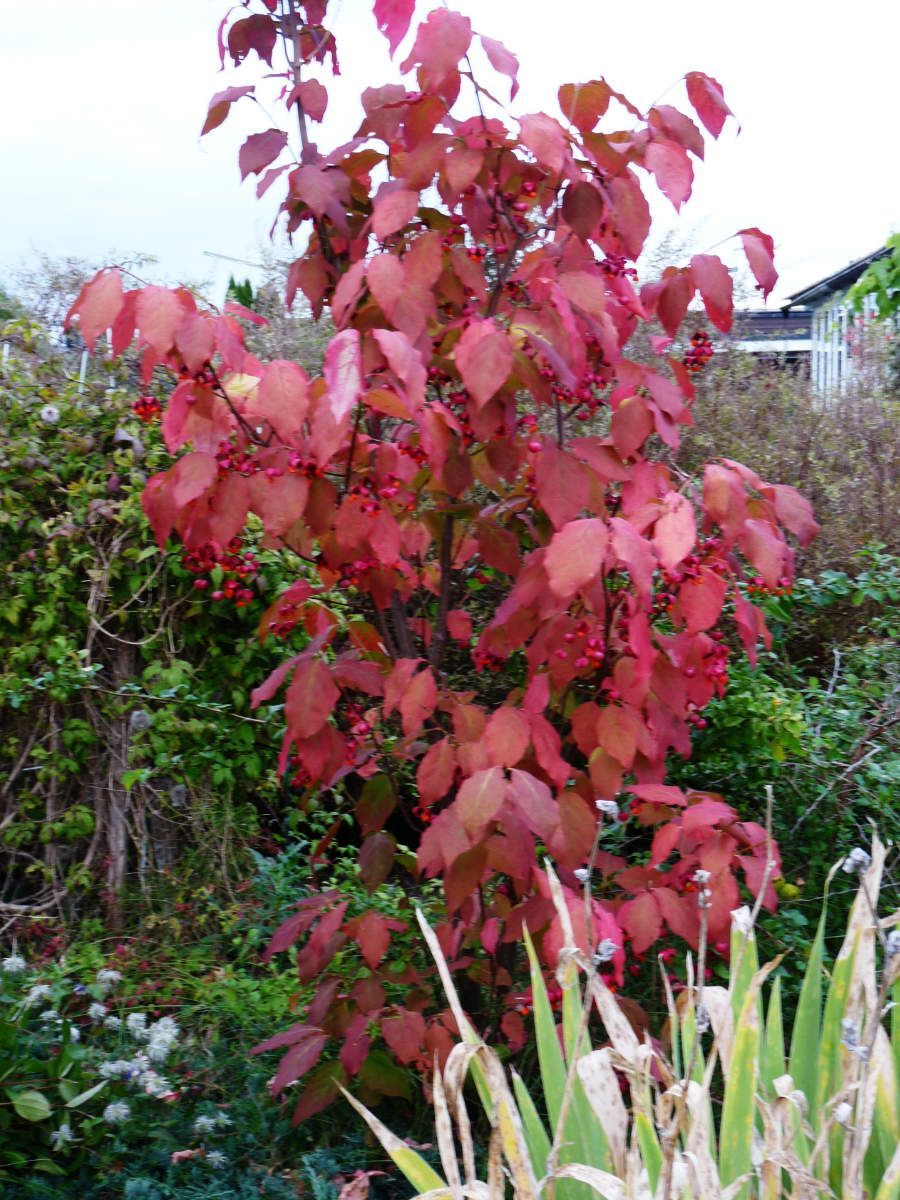 Benved gör inte så mycket väsen av sig på sommaren, men på hösten får den gulröd höstfärg och vackra frukter.